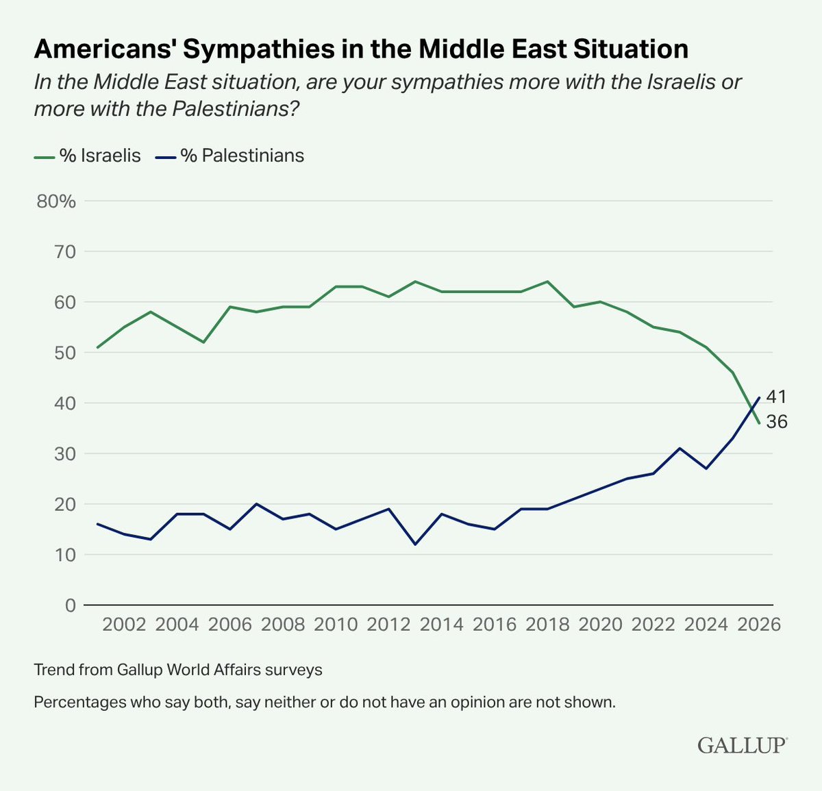 Re: NEW: A plurality of Americans sympathize more with the Palestinians than with the Israelis for the first time in Gallup polling history.